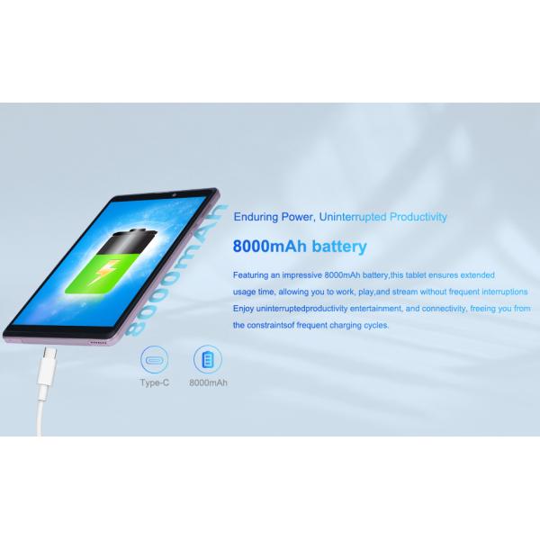【IPS screen and 8000mAh battery】This tablet comes with an 8-inch HD screen with a resolution of 1280x800. for better image quality and colors. The auto mode relieves eye fatigue when reading, browsing the web, working online or watching videos. In addition, the 8000mah battery ensures more than 8 hours of usage